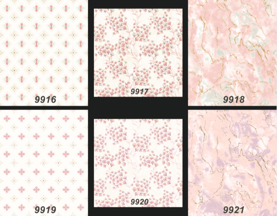 کاغذ دیواری صورتی آلبوم گل برند مدرن هیراد کد9916 تا 9921